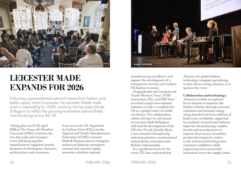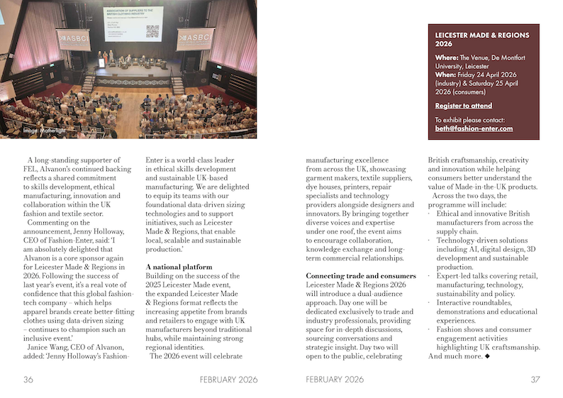 The February 2026 edition of the ASBCI’s In Association magazine featured an extensive four-page spread on the up-coming Leicester Made & Regions trade event. The feature not only celebrated the event’s growth and impact but also showcased its role in championing UK-based production, innovation and skills development. By dedicating significant editorial space to the initiative, ASBCI has helped elevate its national profile and encourage wider industry engagement.