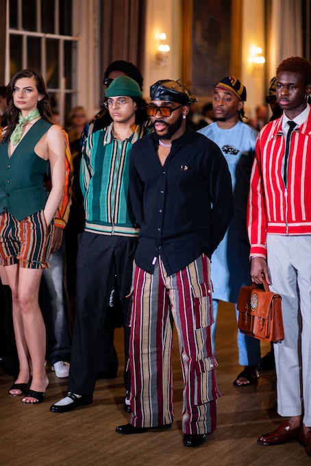 (Midetush finale at Leicester Fashion Week 2025, Olumide Oyewunmi in the centre)