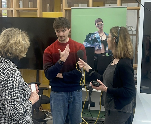 (Jenny and designer Jo Jacobs being interviewed at the FEL factory by BBC Radio 4)