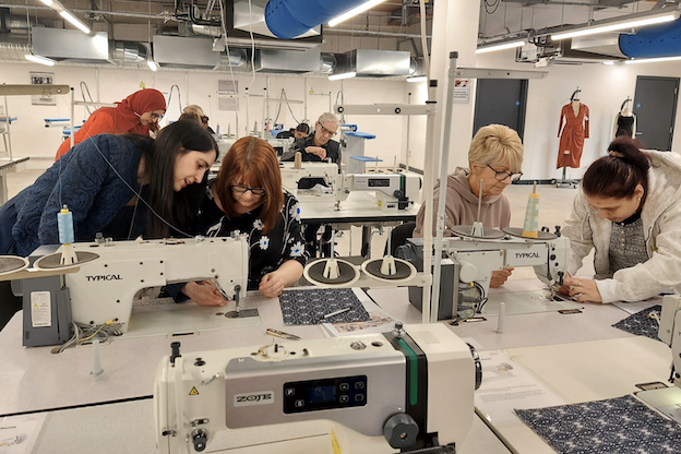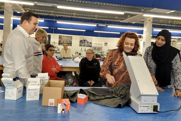 In partnership with Textile Services Association (TSA) FCFTA Leicester held a two-day tailor-made PPE Workwear Repair Training course. This niche course enables PPE/workwear quality teams to develop a stable and upskilled group of repairers. FTA tutor Ana Cover joined the team in Leicester along with TSA and Thermopatch UK representatives.